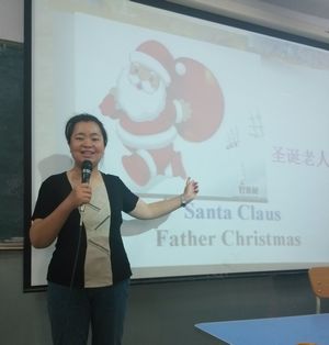 徐敏老师播放了事先由相关老师协助拍摄她讲的《新编实用英语综合教程》第一册第三版第七单元的《Christmas Celebrations Around the World》课程教学录像片,并进行实地现场说课。 由于徐敏老师的说课十分充满激情和风趣,获得了评委、观赛的老师一致好评和热烈的掌声。