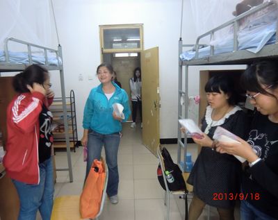 中国传统节日中秋佳节将至,每逢佳节倍思亲,为了减少大一新生的思乡之情,安心的在校学习生活, 9月18日中午,外语系行政副主任郑丽带领2013级新生班主任张义贵及相关同学代表学院走访了新生各班级所在的6号楼、8号楼以及13号楼等宿舍,向他们送去了学校领导对他们的关怀,并致以节日的问候。
