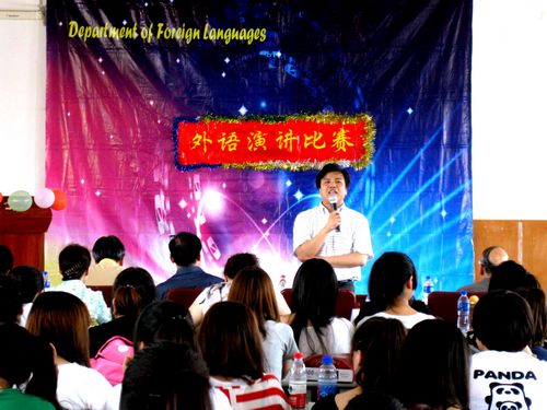 2012年6月8日下午, 外语系在三号教学楼模拟法庭举行了第十届“培黎杯”外语演讲比赛。余临院长到场亲切致辞,出席本次比赛的校领导还有李培均副院长、关仲和副院长、翟天利副院长。演讲比赛的评委由外语系优秀任课教师担任。