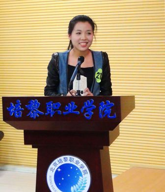 当每位选手演讲结束后,评委老师都会根据选手演讲的内容进行提问,参赛选手们也会根据自己的理解作出回答。选手们准确的用词,流利的语言表述,赢得了评委老师和同学们的好评。台内不时地呈现跌宕起伏的掌声和呐喊声,为参赛选手加油。比赛在紧张而又热烈的气氛中进行。