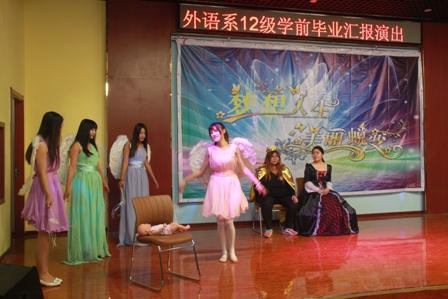 11月18日上午,外语系在3号教学楼学生活动中心隆重举行了2012级学前专业毕业汇报演出暨专场招聘会,学院领导、系处领导和受邀的北京半山国际双语幼儿园、北京先策幼儿园及幼教培训机构等15家招聘单位负责人、嘉宾和不少学生家长到场观看演出,外语系2013级学前专业的全体学生进行了观摩学习。