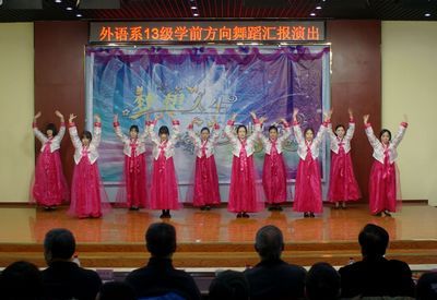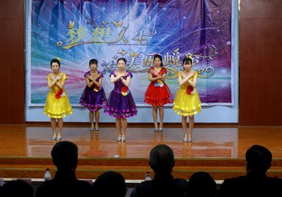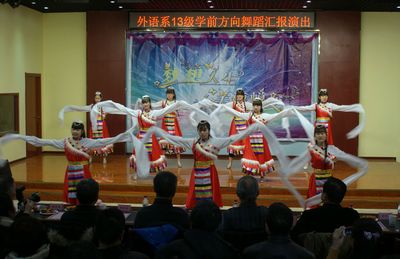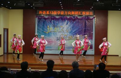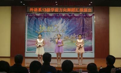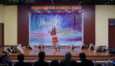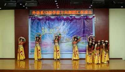 1月6日上午3号教学楼学生活动中心人头攒动,热闹非凡。外语系2013级学前方向舞蹈汇报演出在此精彩上演。学院党委副书记尤锡良、常务副院长关仲和、学院党委副书记、副院长翟天利以及副院长杨永安,还有各系、处室的领导老师和部分学生家长到场观看了演出。此外,2014级学前方向的学生们也到场进行观摩,为明年汇演做准备。
