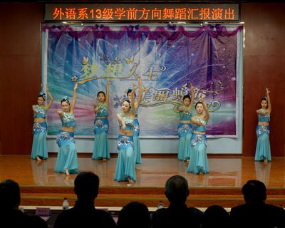 接下来,13级学前枫叶班带来的朝鲜族舞蹈《阿里郎》展示了朝鲜舞中仙鹤式的飘逸与优雅,令人回味无穷,精彩绝伦。13级学前1班的东北秧歌,则演绎得大胆泼辣、热情幽默,极具表现力和感染力。13级学前3班的傣族舞惟妙惟肖,婀娜多姿,宛如一只只栩栩如生的孔雀翩翩起舞。另外,还有维族、佤族、蒙族等少数民族舞蹈的展示,美不胜收,令人目不暇接。最后的儿童舞蹈展示环节,小朋友喜闻乐见的《爱我你就亲亲我》,充满可爱动感的集体舞《起立、敬礼、坐下》等天真烂漫的幼儿舞蹈带给观众快乐的同时,也勾起了大家对于儿时的那份记忆。整场汇报表演现场气氛欢快,台下掌声不断。