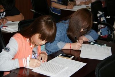 简短的开幕式之后,外语文化节之外文书写大赛拉开了帷幕。经过初赛选拔,全院共计37名选手进入该项比赛的决赛。赛场上,每一位选手都在紧张而认真的书写着,他们作品的字迹都很流畅端正,卷面整洁漂亮,令人赏心悦目。整个比赛过程轻松热烈,富有实效,达到了预期的活动目的。随后,我们会将评委老师按外文规范书写要求评定出的获奖作品,在校内布告栏内进行展览,供同学们学习欣赏。