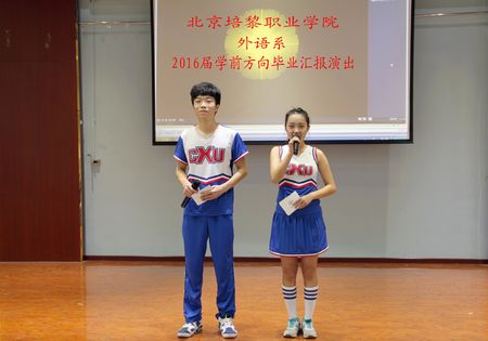 2015年11月19日上午,我院学生活动中心的大厅内欢歌笑语、载歌载舞,呈现一片欢乐的海洋。外语系2013级学前双语教育班毕业汇报演出正在浓情上演。学院副院长翟天利、副院长杨永安以及各系、处、室的领导出席并观看了演出。二十一世纪实验幼儿园、青苗国际幼儿园、北京教育学院丰台分院附属学校幼儿园以及新东方、启迪巨人等二十多家招聘单位的负责人也应邀光临了演出现场。