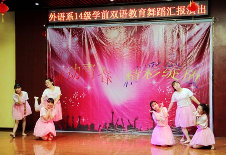 为检验学前双语教育舞蹈教学成果,展示学生的舞蹈技能水平,6月29日上午9点,14级学前双语教育舞蹈教学汇报演出在学生活动中心成功举行,学院董事尤锡良、学院副院长翟天利、副院长、著名画家杨永安以及副院长王颖、副院长黄贤明等领导应邀出席,另外还有十所幼儿园园长和教育集团的负责人,各系、处室的领导、部分学生家长应邀出席,14级学前双语教育学生和部分教师观看了演出。