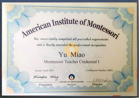 蒙特梭利学院认证的蒙特梭利教师资格证书