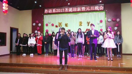外语系于2017年12月21号在三号楼五楼活动中心隆重举办了圣诞迎新晚会,六点嘉宾开始入场,六点半在四位主持人的主持下圣诞迎新晚会正式开始!