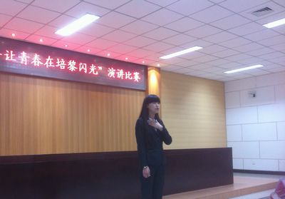 2013年5月17日中午12:00,由校团委举办的“迎校庆,我的青春在培黎闪光”为主题的演讲赛决赛在新图书馆报告厅隆重举行。经各系内部预赛选拔,全院共有13名选手参加了此次决赛。我系选派了2012级学前双语教育班瓮安冉、2011级商日班孙鑫旺两名同学代表外语系参加此次演讲赛决赛。两名选手在比赛中慷慨激昂,抒发了自己在培黎成长的点滴,深深地表达了自己的感恩之心,爱校之情,彰显了当代大学生积极向上的良好精神风貌。
