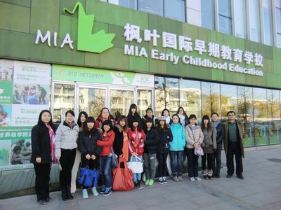 11月7日上午,在外语系的统一协调与安排下,学院副院长兼外语系系主任翟天利等一行人员,组织2013级学前蒙氏定向班的15名大一新生乘坐校车来到北京枫叶国际幼儿园进行观摩学习。该园作为完美在线登录官网本届蒙氏定向班的合作方,对同学们的到来表示热烈欢迎。