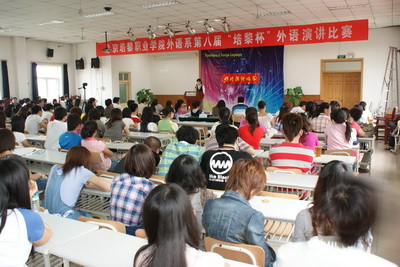 2010年5月28日下午一点三十分,在完美在线登录官网三号楼模拟法庭举办了第八届“培黎杯”演讲比赛。在决赛中共有十五名优秀选手入围。分别由英语组十名同学和日语组五名同学组成。本次活动不仅同学们积极响应,更得到了老师和学校的大力支持。比赛现场不仅请来了英语系的优秀教师们担任评委,更有学院的领导前来为同学们加油打气。 比赛受到了同学们的广泛关注,经主持人的一番介绍,在同学们的热烈掌声中,比赛正式拉开了帷幕。第一个出场的选手是来自英语组08级的选手王亚超,她用流利的英语,标准的发音为此次演讲比赛很好的开了头。接下来的每一位选手在场上都发挥出了自己最好的水平。不仅是英语组的同学演讲过程堪称完美,日语组的同学们也把他们的实力发挥的淋漓尽致。来自09级商务日语班的李美香是这次外语演讲比赛唯一一位大一的选手,她的日语演讲过程流利自如,语音语调非常标准,得到了在场评委的一致认可。每位选在进行完自己的演讲后,都会有评委老师现场提问,这样使选手们的口语能力以及应变能力得到了充分的考验和发挥。此次比赛的演讲题目和提问,都紧跟时代步伐,突出时代的气息,更好的展现了当代大学生的风采。除此之外还有精彩的新疆舞蹈、朝语歌曲等表演节目。最后通过激烈的角逐,最终英语组徐阳日语组杨征远荣获本次外语演讲比赛的一等奖,二等奖获奖选手为英语组王亚超、闫帅印、高文利;日语组郑颖馨,三等奖获奖选手为英语组侯忠玲、杨征远、张红燕、张丽、段馨、王亚琦;日语组李美香、伊善敏、王春燕。最佳语音语调奖的获奖选手为英语组徐阳,日语组李美香。作为此次比赛的点评嘉宾:外籍教师大卫赛后激动的说:“连续参加8届培黎杯,一届比一届精彩,选手一年比一年发挥出色!”