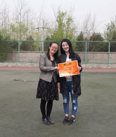 系领导为获得团体赛一等奖14级学前双语二A班颁奖