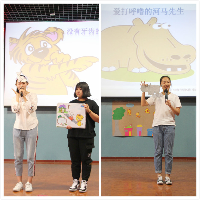 为了更好的检验学前教育专业学生讲故事的技能,5月10日下午,我院第六届外语文化节讲故事大赛决赛在学生活动中心成功举行,经过紧张又激烈的初赛和复赛最终有我院2017级、2018级学前教育专业学生共16名选手入围决赛。此次决赛特邀与我院建立校企合作关系的三家幼儿园的园长担任评委。此外,学院办公室、教务处、学生处等各部门负责人、各系学生工作主任以及全校学生代表到场参加了活动。